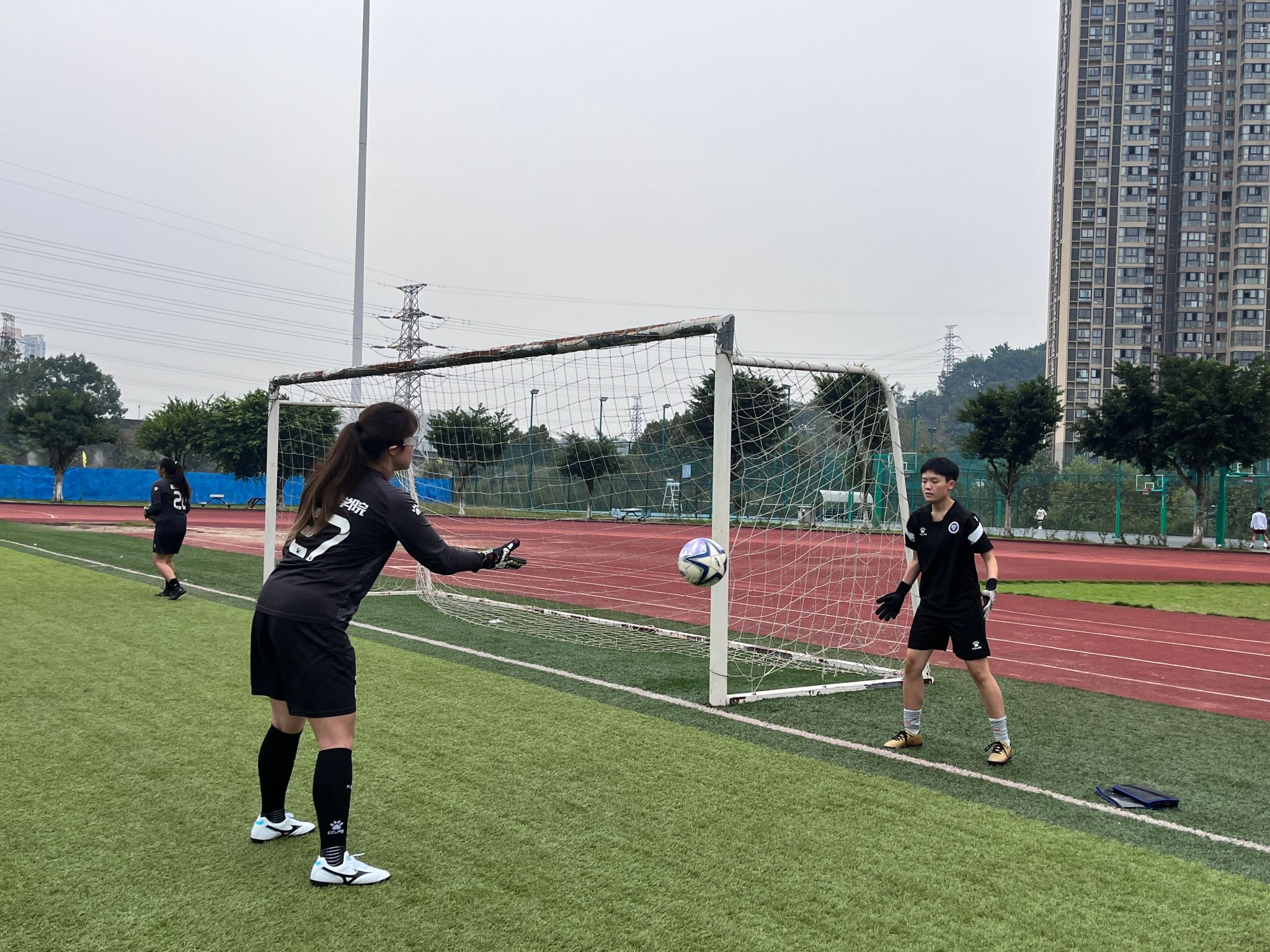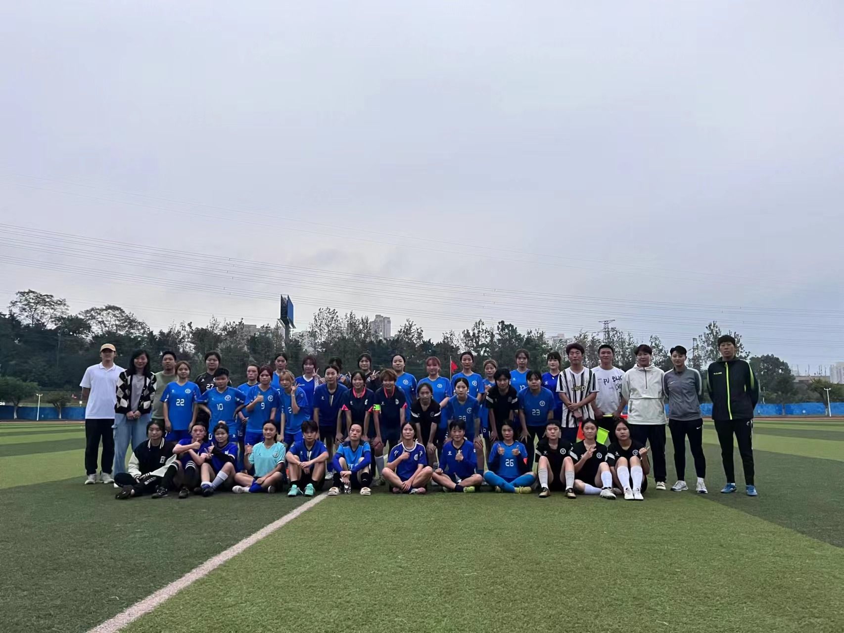 奔跑,是女足姑娘们在赛场是始终如一的姿态,团结,是铿锵玫瑰在逆境中顽强绽放的密码。所有光鲜亮丽的背后,无不受汗水浸润着;所有奇迹的再现,无不篆刻着日复一日的努力和拼搏。为双校区备战十一月的重庆市大学生足球联赛而选拔队员,同时也是双校区第一次尝试合练,此次加强了双校区女足的合作交流与融合发展,提供了更广阔的展示舞台和丰富的学习经验。綦江女足校队携手“退役”老将于2023年10月18日前往合川校区进行足球交流会,与合川女足共同感受足球魅力。无论是新生队员还是“退役”老将,她们对足球的热爱是和女足精神一样,无畏风雪,勇毅前行。