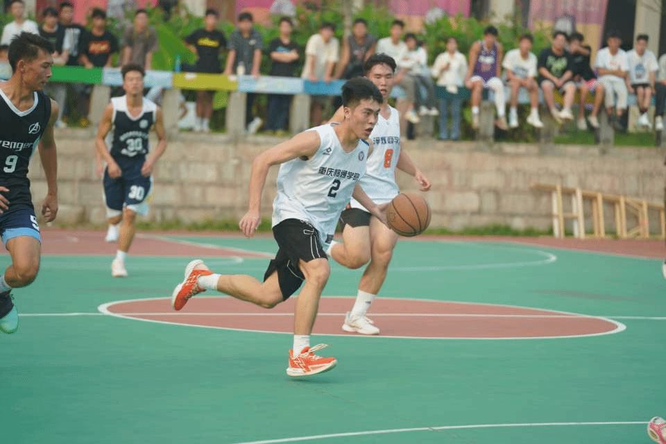 男子组的比赛率先打响。场地上,两校区的球队成员高声呼喊为自己加油打气。比赛一开始,两个校区的队员就展现出了极高的竞技状态。他们矫健熟练的动作、勇往直前的冲劲以及团队之间的默契配合,都让在场的观众们大呼过瘾。无论是合川校队的快速进攻,还是綦江校队的稳固防守,都展现出了各自的特点。每个队员都全力以赴,进攻的步伐都裹挟着“肃杀”的气息,大家希望能够展现自己的实力的同时争得属于自己的荣誉。