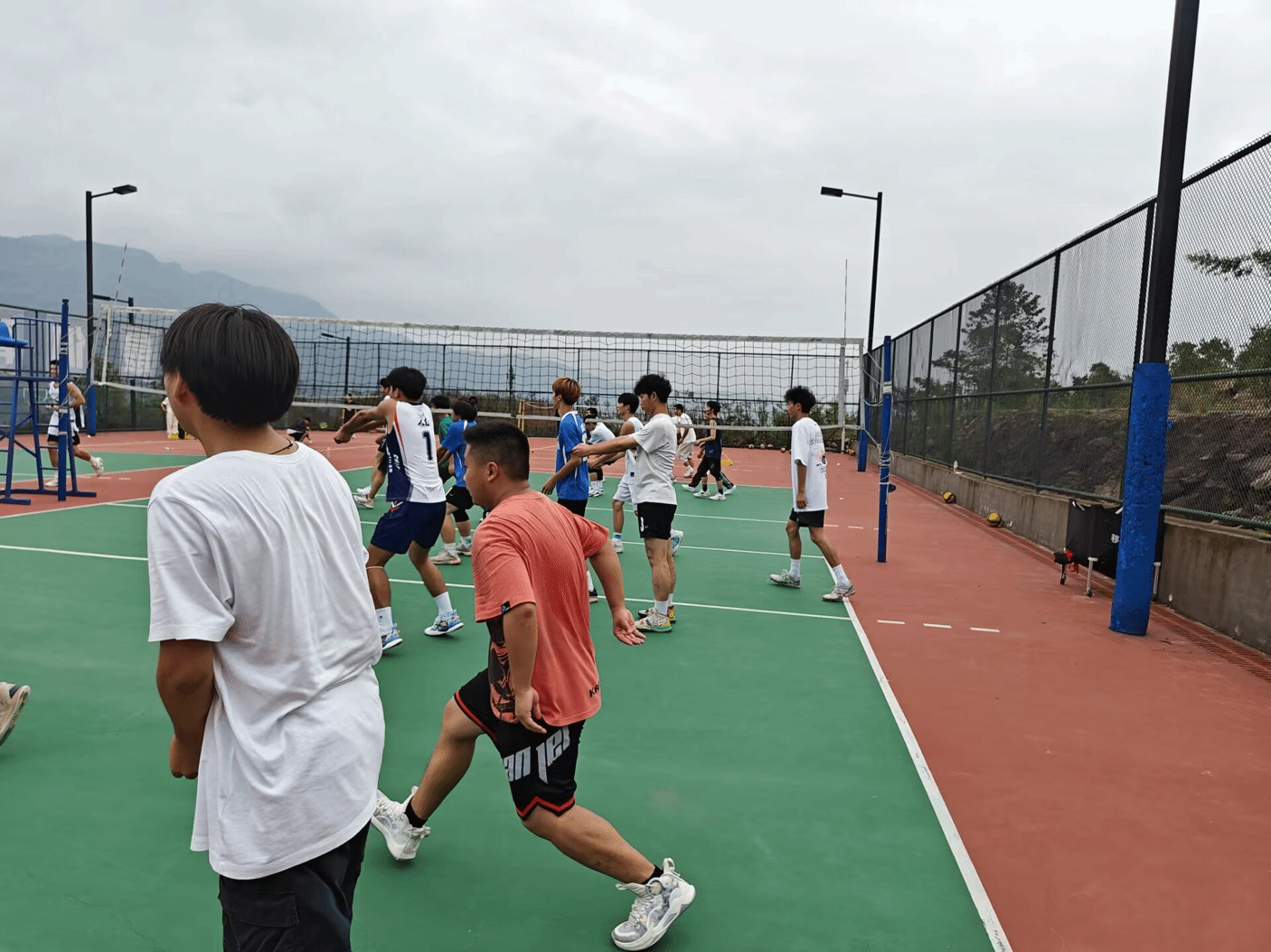 2023年10月13日星期五,今天没有训练,校排球男队女队在横山功能室共同团建。团建内容主要以玩游戏为主,第一个是垫球游戏,每人轮流垫不让球落地。然后还有一个翻卡牌的游戏,十人一组团队合作。促进了男女队员们之间的关系,也让队员之间更加熟悉对方。