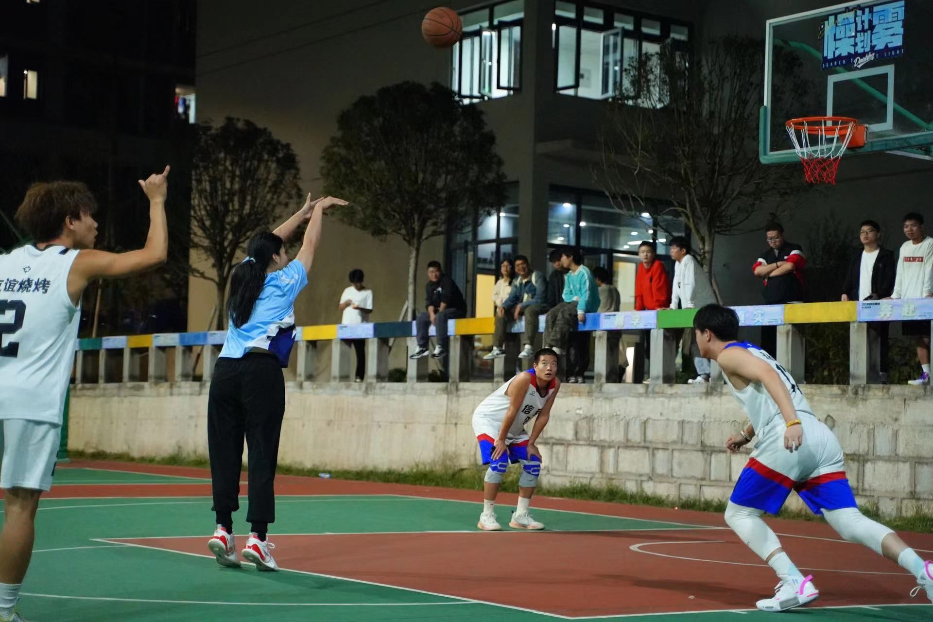 秋风带来丝丝凉意,球员们的热情却在这金秋燃亮了整个移通学院。10月11日晚18:50,一场重庆移通学院校男子篮球队与教练老师们的“师生篮球赛”在瀛溪书院篮球场拉开序幕。作为一个帮助新队员和教练快速破冰的友谊赛,本次赛事不仅能增强队员间的联系,让新球队快速凝结为一个整体,更能让教练深刻了解队员们的实力,便于制定日后的训练计划。