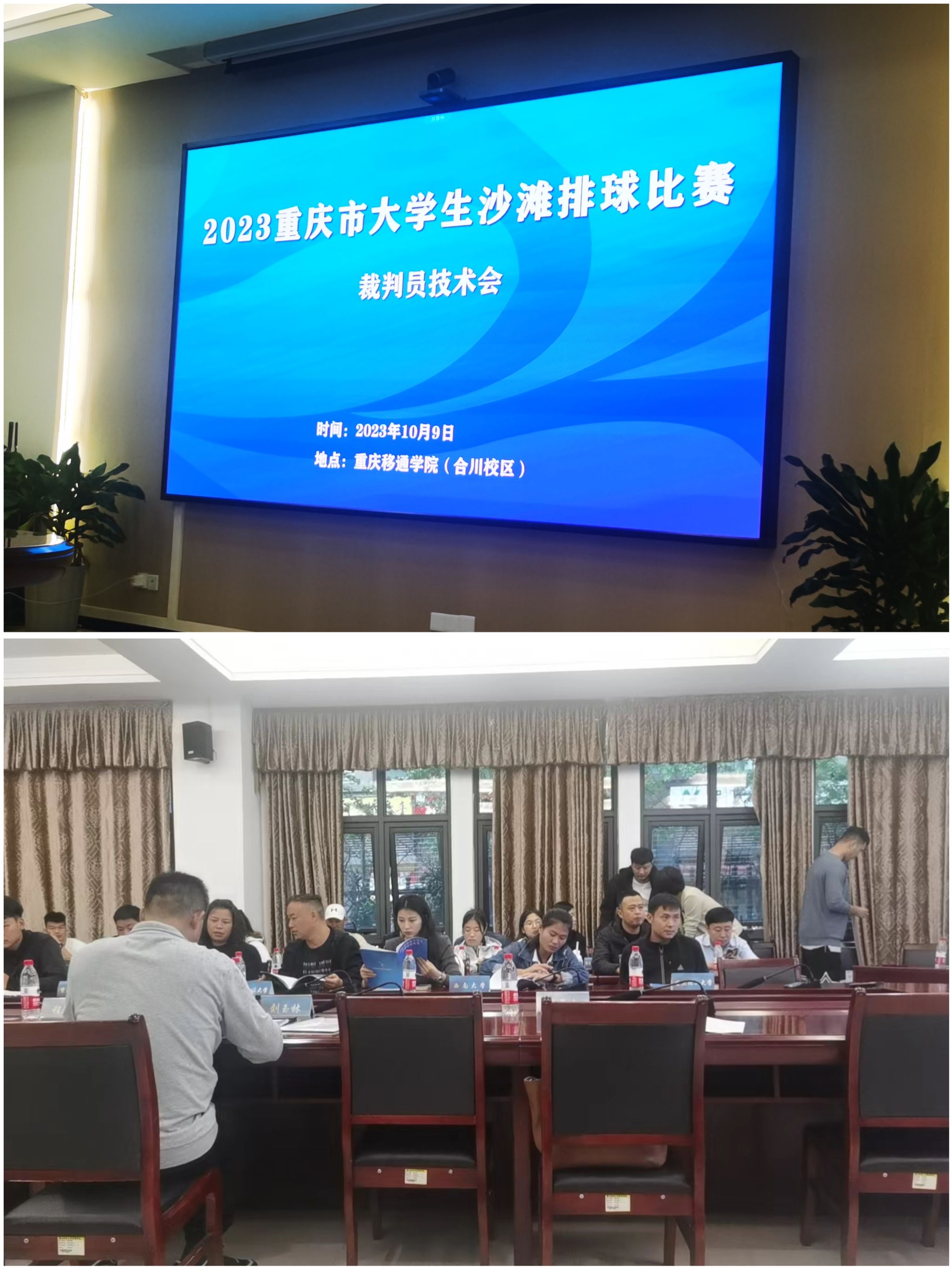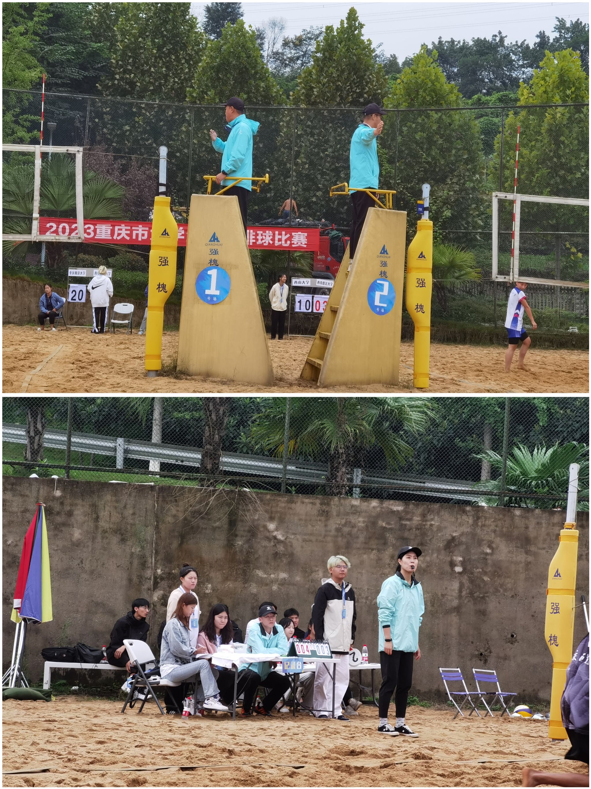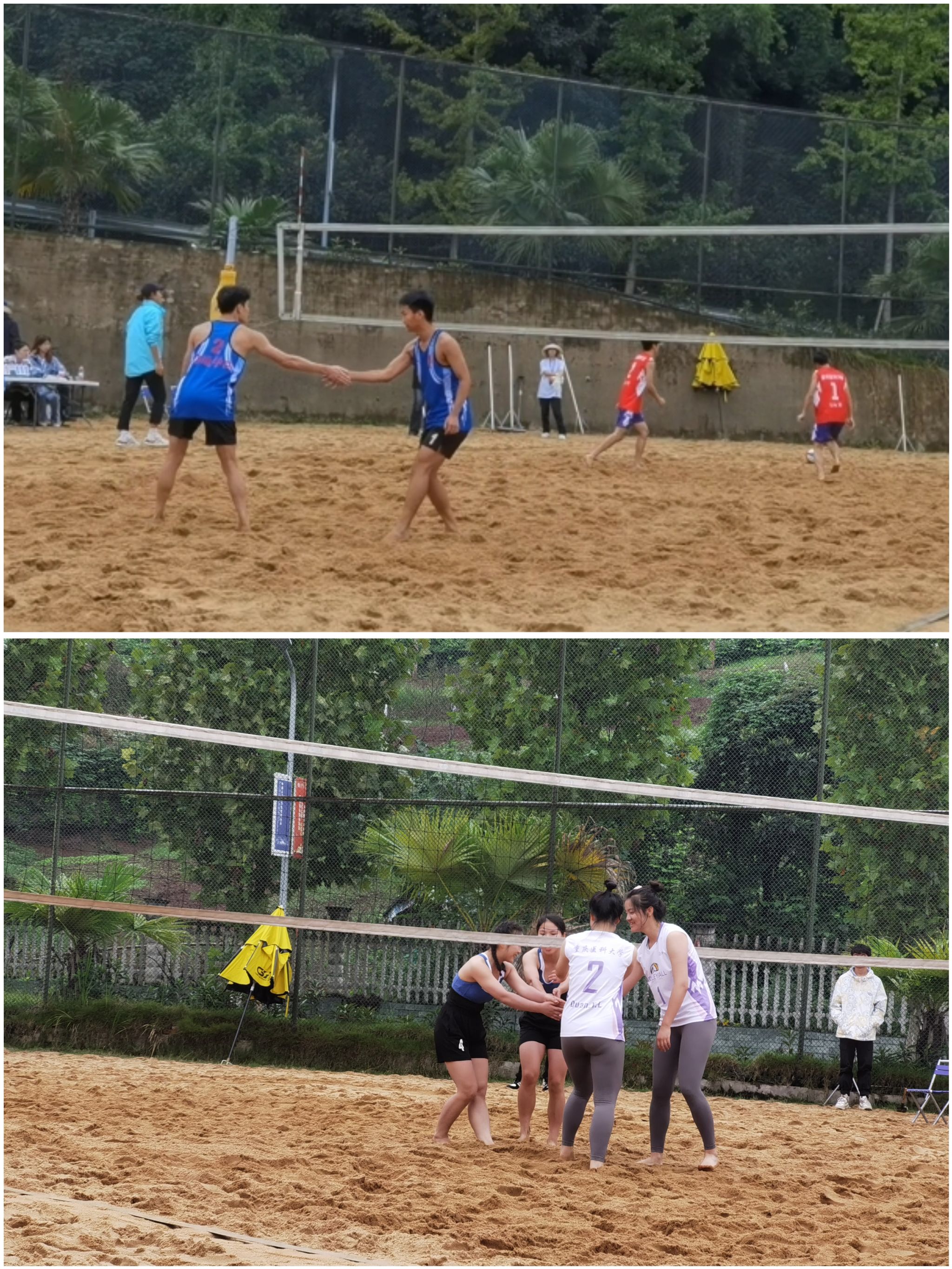 2023年10月10日,重庆市大学生沙排比赛在重庆移通学院合川校区展开,为促进綦江校区体育风气和沙滩排球发展,綦江校区男排女排教练与学生代表来到合川观摩学习本次大学生沙排比赛,一睹运动员的风采,为我校选手加油助威。