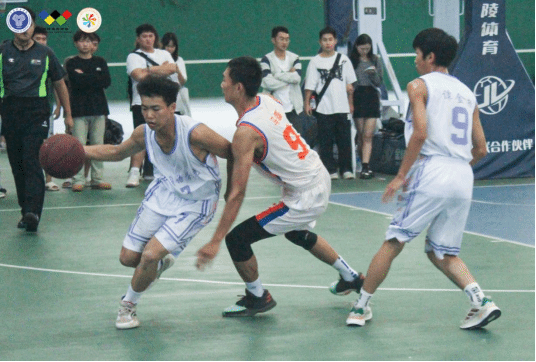 随着哨声响起,战幕拉开,发球、运球、传球、断球、拼抢……场上运动员个个生龙活虎,展开了激烈的争夺,气氛立刻紧张起来。
