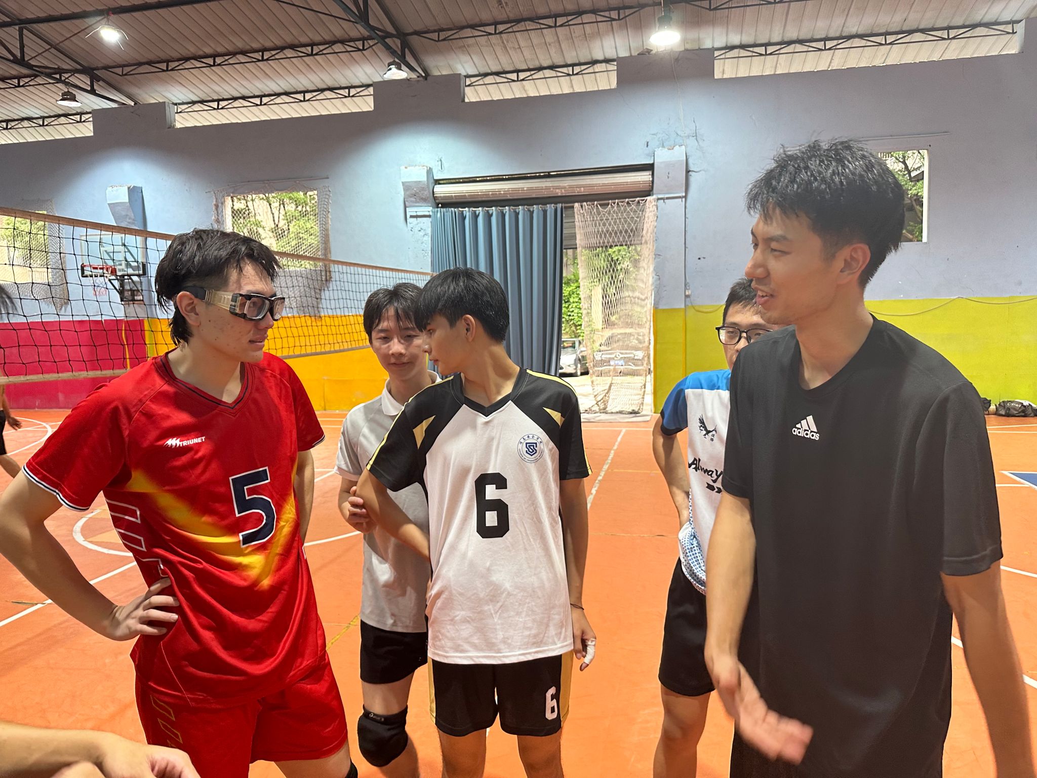 周六的排球校队团建活动将团队合作和磨合提升到新高度。我们安排了友谊赛,这为队员们提供了与其他队伍交流的机会。在比赛中,李易泽教练不仅仅是观众,同时积极参与并亲自上阵,为队员们进行现场教学。李教练不仅指导队员们在比赛中运用战术,还鼓励大家保持冷静、专注和灵活。大一新同学在比赛中渐渐领悟到排球的魅力,并与老队员们建立了更紧密的联系。团建活动的成功举行巩固了团队凝聚力。