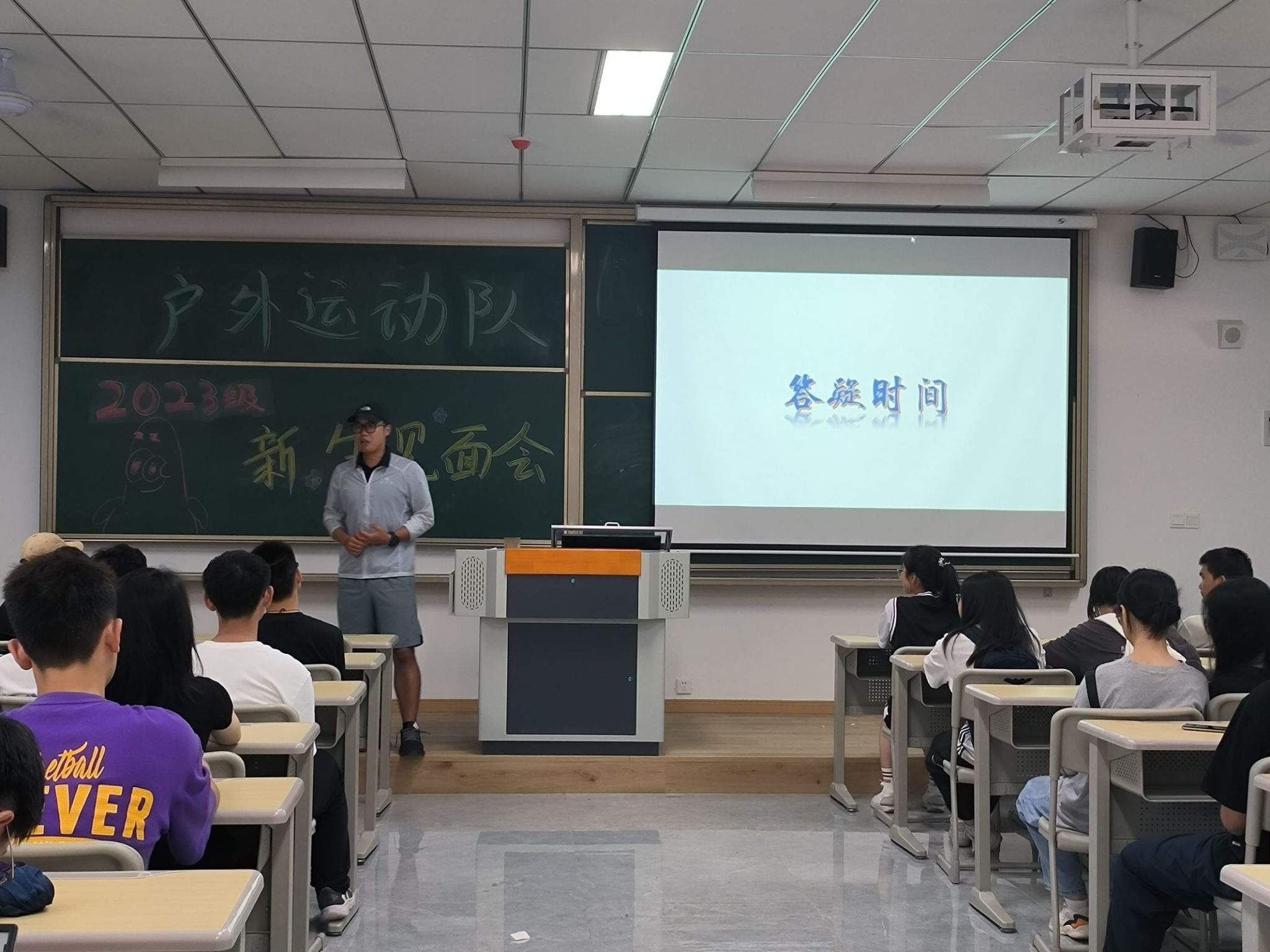 “过往皆为序章,来日方值期许。”在如火如荼的开学季中,校户外运动队迎来一批对户外运动有着热爱和期待的一群人。为让新成员更快地了解并加入校户外运动队,9月15日,校户外运动队特此举办了2023级新生见面会。本次见面会有户外运动队段超、林培泽、王欣等六位教练出席现场,老队员与新成员共计80名同学参与其中。由队长喻正坤做主持,为新成员讲述户外运动队的队规和训练等相关事宜。