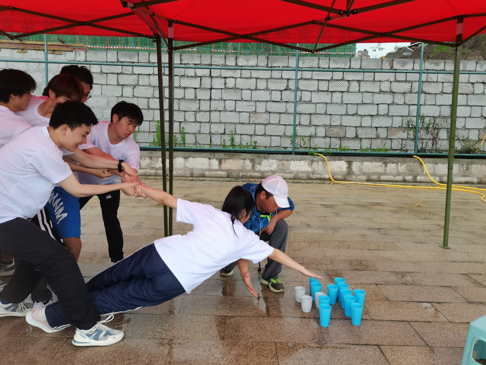 在最难的怪兽过河项目中,同学们需要合理地运用8双手,4只脚通过河面。为确保完成项目,同学们精诚合作,充分发挥想象力,集思广益,心向一处想,力往一处使,冷静分析问题,最终成功过河。当每支队伍集体过完河后,大家都激动地欢呼起来,为团队成功完成项目而喝彩,为每一位团队成员的努力而喝彩,为同学们奋勇拼搏、超越自我而喝彩。