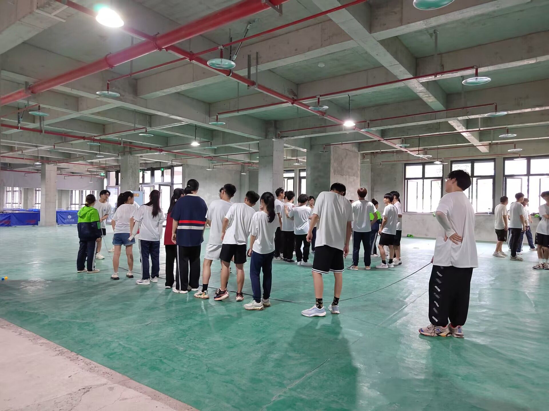 课程初期,教练将同学们随机分成6支队伍,随后进行各队的队名、队歌、队形、口号等团队风采内容创作,并在最后完成团队风采展示。由于同学们相互不了解且参与性不高,导致团队风采内容创作在最开始时进度缓慢,不过在队长们的积极鼓励和号召下,同学们开始踊跃参与,互相交流沟通,不断磨合,团队精神初步展现,最终同学们在规定时间内完成了团队风采内容创作及展示。