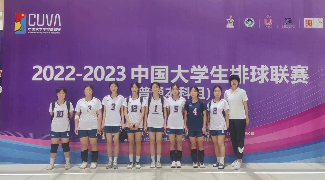 参加比赛:5月26日2022-2023中国大学生排球联赛(普通本科组)在福建厦门落下帷幕。本次比赛是我校排球队第一次参加全国比赛也是大学普通本科组的最高殿堂,经过10天体力和精神上的高强度压力,我校女子排球队在14只参赛队中顽强拼搏最终获得十二。
