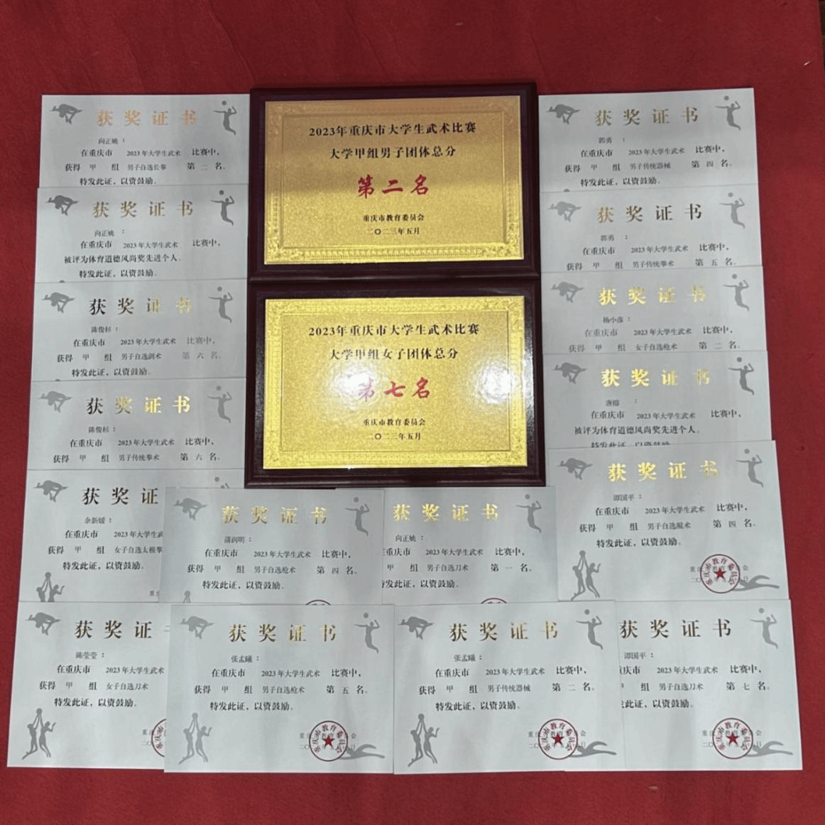 本次比赛共有29所高校、37支代表队、303名运动员和30余名工作人员参与比赛。运动员在拳术、短器械、长器械、传统拳术、传统器械、对练共6个大类69个单项上进行角逐。在重庆移通学院武术队教练员姜志成老师、马烨军老师、杨闯老师的带领下,经过四天的激烈角逐,我校武术队取得了男子甲组团体第二名,女子甲组团队第七名的好成绩。