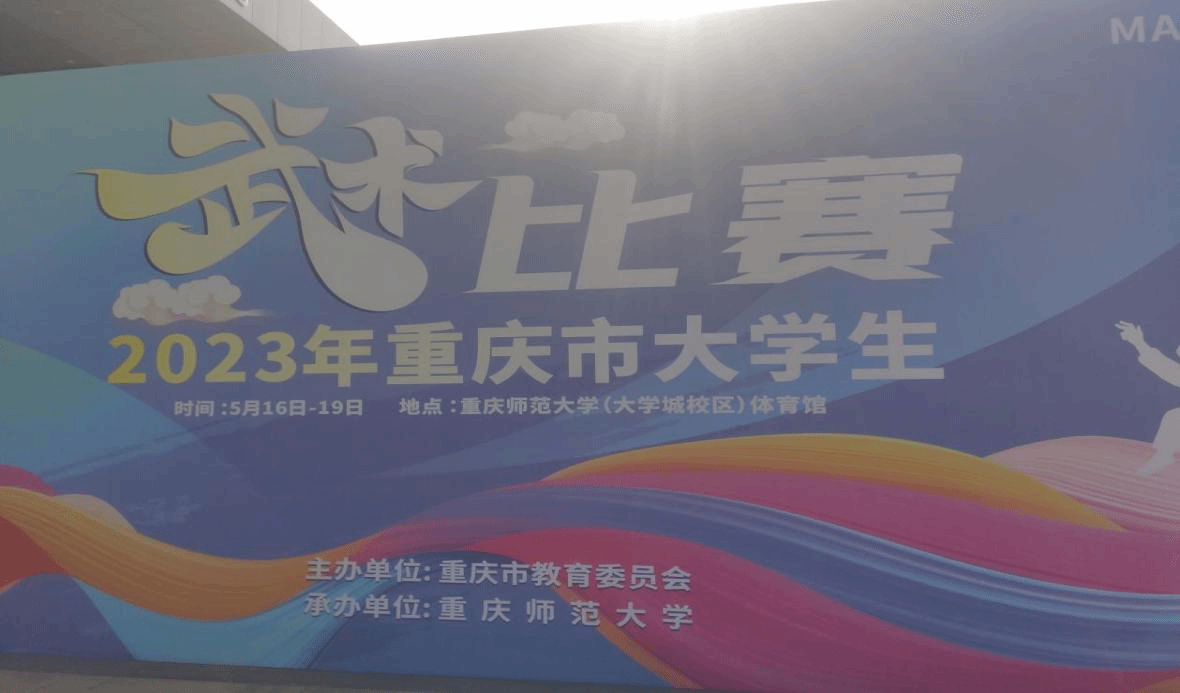 2023年5月16日-19日,由重庆市教育委员会主办、重庆师范大学承办的“2023年重庆市大学生武术比赛”在重庆师范大学大学城校区体育馆成功举办。