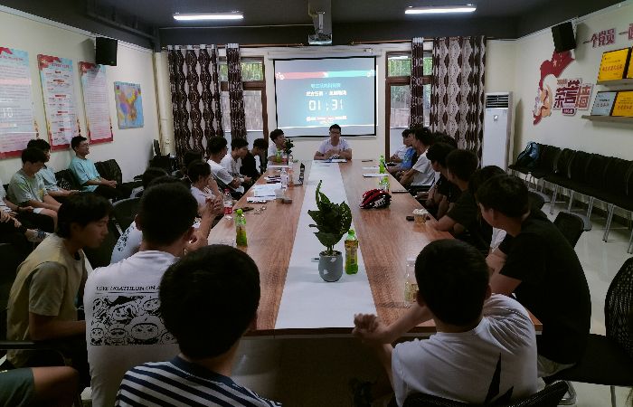 5月24日校13铁人三项队在荷悦书院举行了第一届论题为“训练是否会影响学习”的队内辩论赛。采用通用的比赛赛制,由俩位队长分别带队,八位队员作为辩手,展开一场激烈的对辩,最后由教练作为评委进行打分以及总结。