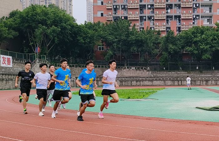 5月校13铁人三项队前期以强化训练为主,训练方式包括长距离耐力跑、间歇跑、全身的身体素质强化训以及多组短距离速游等。后期重点训练队员们的跑步姿势和节奏,磨合队员们之间的跑步步频、步幅、摆臂幅度。