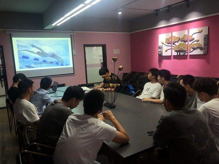 本月的团建活动5月17日在别都书院多功能研讨室开展。这次活动我们举行了校男子游泳队一年一届的换届大会。在各位队员的激烈竞争和队员们的公平公正的投票下,抉择出了新任队长。新老交替,教练为新任队长提出部分建议,上任的几位队长给大家分析了自己的经验,让队员们更加清楚自己在大学中想要的是什么,需要为付出相应的努力。