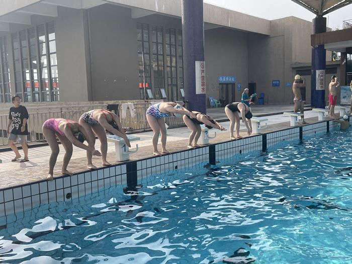 本月女游训练任务主要以强化自由泳、蛙泳技术,学习仰泳、蝶泳技术为主,同时加强专项力量训练,来提升爆发力和训练强度。其次,不断练习转身和出发技术。新生在纠正自由泳技术的基础上加快对蛙泳踩水及蛙泳配合技术学习,保证队员深水区训练安全。