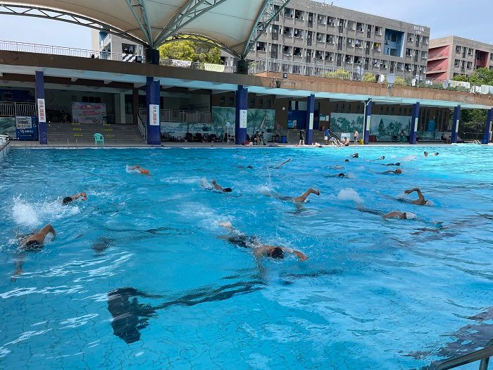 本月校男子游泳队的训练从内池转换到了学校外池,大部分队员也是第一次在外池训练,虽然环境改变了,但是队员们对训练的热情依旧不减,反而更加积极,有时天气不好,但教练和队员们也从未缺勤每一次训练。