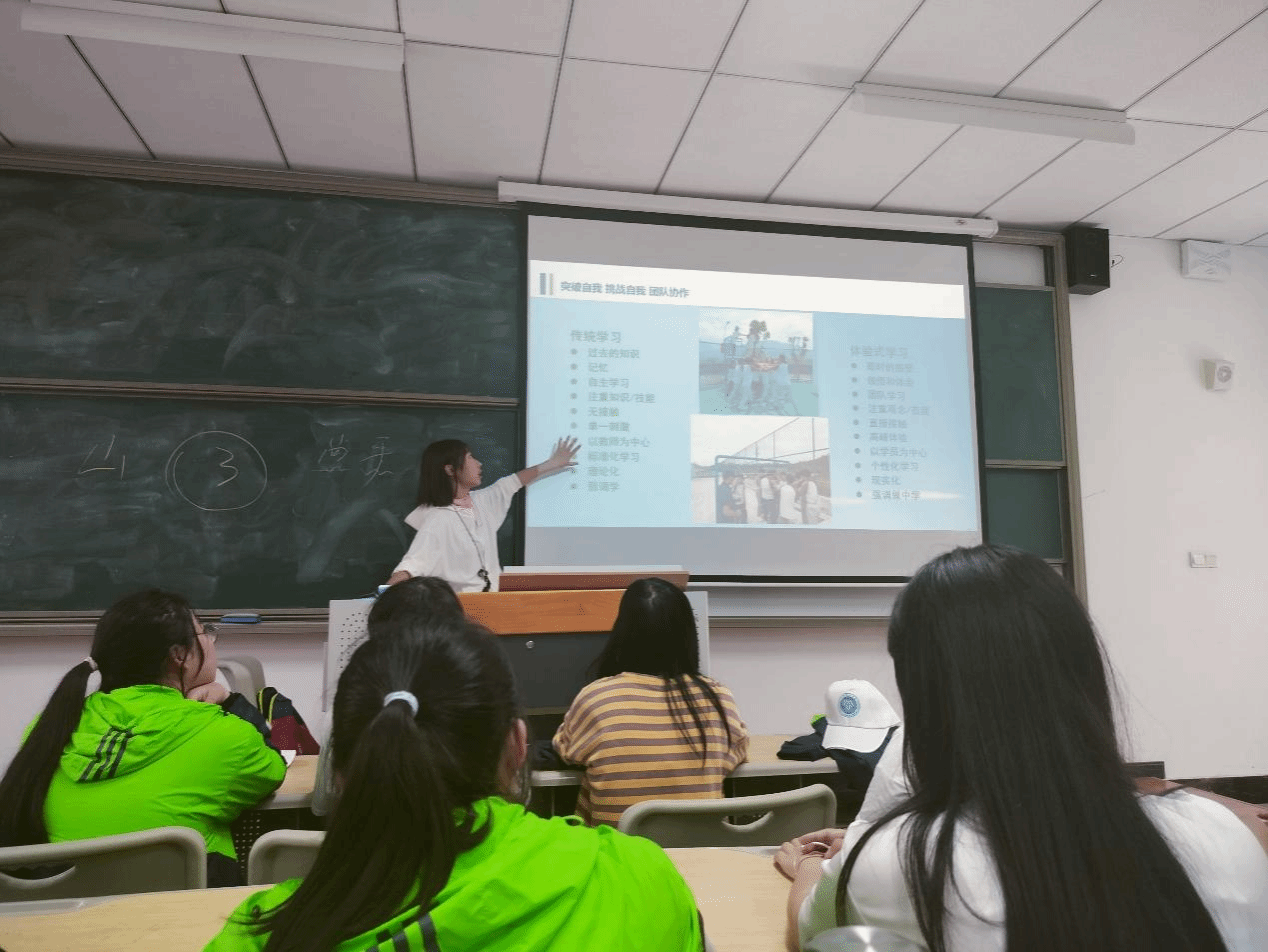 课程伊始,由教练向同学们详细地介绍了营地教育的种种项目和意义,让同学们更好地了解了营地教育,也为接下来三天的营地训练奠定基础。随后,教练将同学们随机分成六个小队,并选出各自队伍的队长。在队长的带领下,各个小队开始起队名、画队旗,唱队歌等团队风采内容创作。在这个过程中,同学们积极发言、提供有意思的想法,现场的创作氛围好不欢乐,拉近了同学们之间的距离,也为培养了同学们的团队协作能力和集体责任感奠定基础。