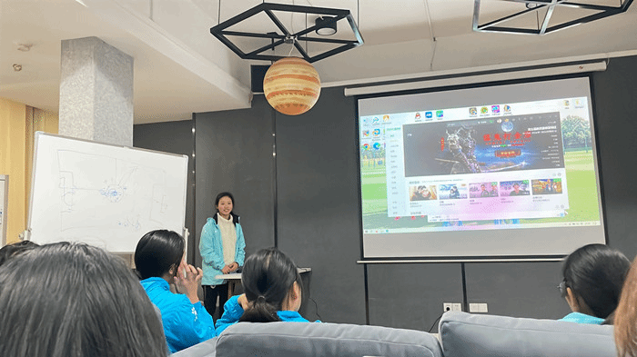 理论学习:3月22日中午12:30,校Twinkle啦啦操排舞队在爱莲书院艺术交流室进行了排舞编排的理论学习,本次理论学习主要是通过观看多样性的排舞视频,让队员们打开编排思路,将以往的固化思维丢弃,尝试学习与探索更多的可能性。希望通过此次理论课程可以让队员们打开新的编排思路。