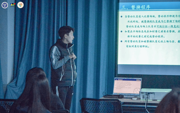 院系对接:本月开展了“双百计划”足球裁判员的第一期培训,参加培训的学院有体联的赛事组织者,有踢足球的校队队员,也有热爱足球运动想要参加与足球有关工作的爱好者,这期课程主要针对赛事组织、场地要求、场上队员以及替补席管理为主题,接下来会有更深入的培新内容,希望通过不断的专业学习和宣传,能有更多热爱足球运动的同学们能够参与其中。