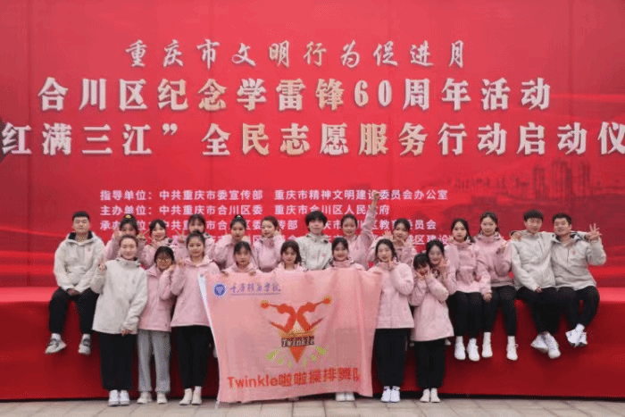 区级活动: 3月2日,由合川区委、区政府主办的重庆市文明行为促进月·合川区纪念学雷锋60周年活动暨“红满三江”全民志愿服务行动启动仪式在合川人民广场拉开帷幕,校Twinkle啦啦操排舞队受邀为活动带来开幕表演“志愿律动”,此次活动意义重大,是2023年队伍首个线下演出,队员们异常期待,演出当天更是收获全场好评。