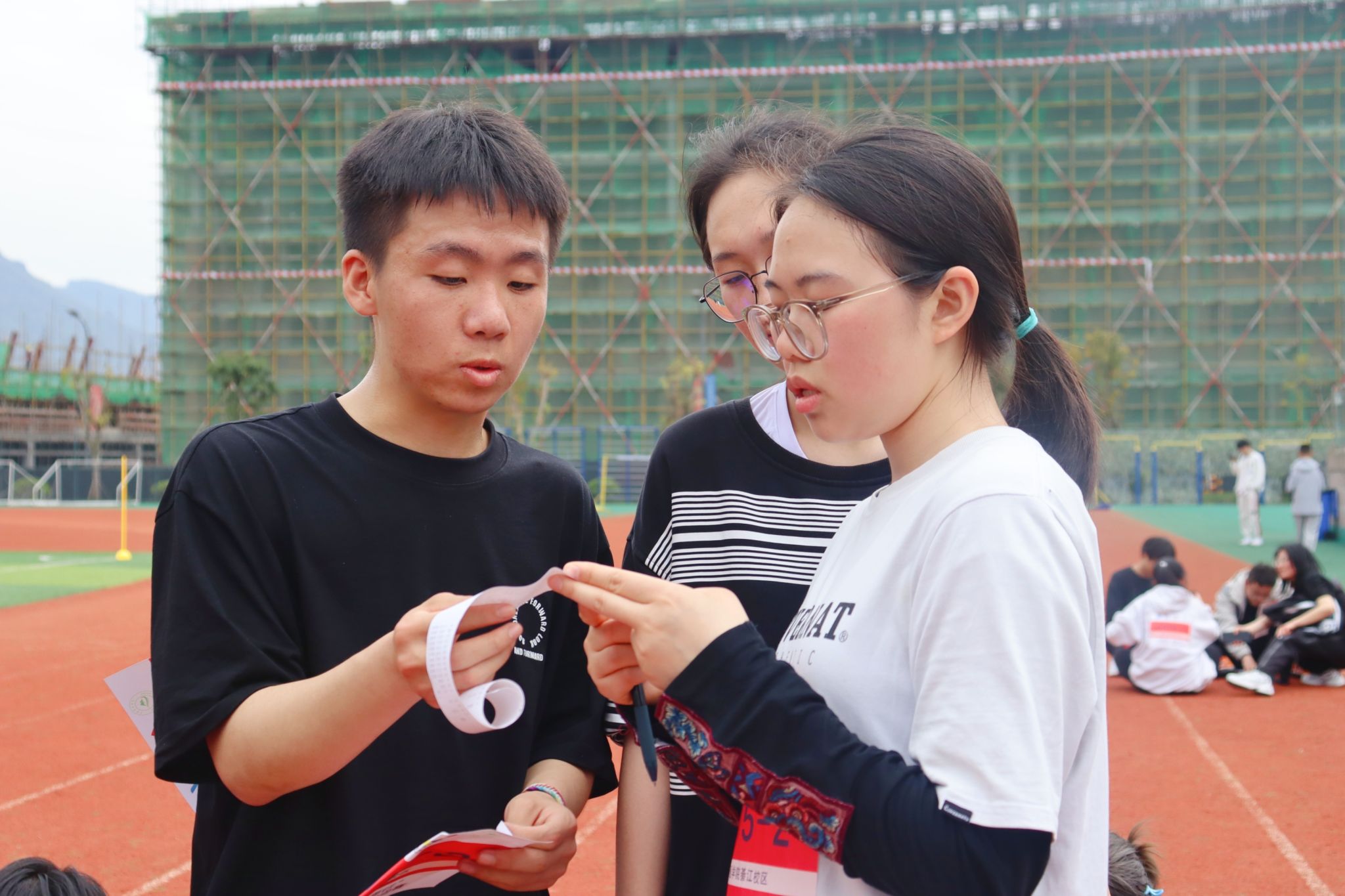 回到终点的参赛选手说:“一开始就是想四个人得个奖杯,想着跑校园有什么难呢!没想到还是有难度,我们团队在前面分工有些问题,我又比较心急,导致大部分的自由点位都是由我来完成打卡,比较耗时。”又一个参赛选手说:“那个“夺命天梯”也太累了,差点没把我“送走”,腿像灌铅了一样,已经抬不动了,但一想到我的队友还在终点那里等我,我就不知道又哪来的力量,冲向天梯上的那个点位。”每一位参赛选手都为了比赛倾尽汗水,为了目标全力以赴,向着终点不懈进发,这既是对比赛、对对手的尊重,也是对体育精神最好的诠释。