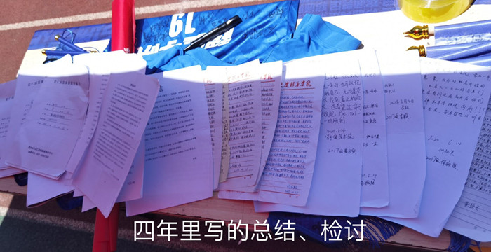 接下来是由教练亲自把他们四年来所写的每一份总结和检讨以及他们在男足这四年来的照片制成纪念册赠予队员们。