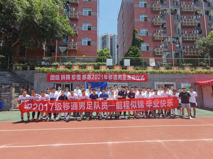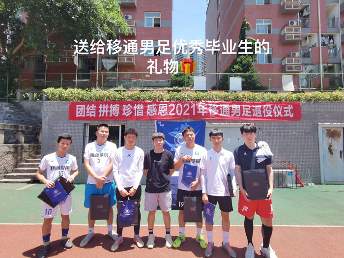 6月4日中午,男足教练江晓羽带领全体队员们集结在B区足球场,参加2021年移通男足退役仪式。