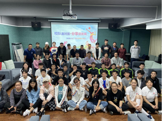 5月24日晚7时,竞技体育中心在爱莲书院多功能影音室,举办了主题为“校队面对面·分享促发展”的完满沙龙·校队参赛分享会。竞技体育中心刘玉林副主任,体育训练部孙哲主任到场交流,竞技体育中心全体教练员与各校队学生代表出席沙龙。