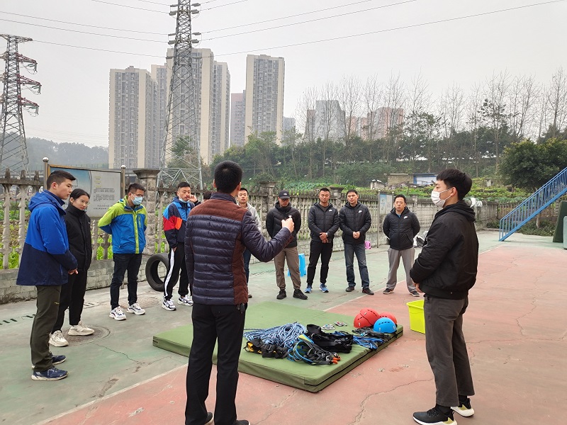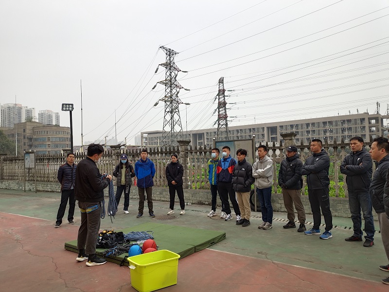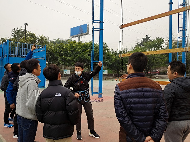 拓展训练部外墙上有一句话“没有完美的个人,只有完美的团队”。本次为教练们准备的安全培训课不单是强调在进行高空项目时应该注意保护措施,更强调协调合作与精准配合。