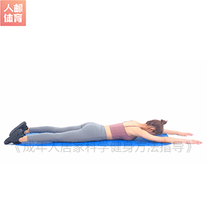俯卧在垫上,双腿伸直与肩同宽,双臂伸直举过头顶。