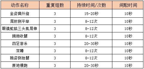 提示:若某个练习是分左右两侧进行的,则以上每组的重复次数或练习时间指的是单侧的训练量,另一侧亦然。