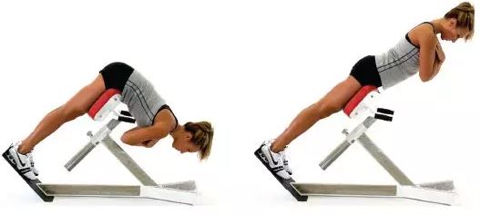 趴在背肌椅上,双膝伸直,双脚与肩同宽,大腿靠垫,双臂交叉放于胸前