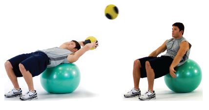 稳定球上拉掷药球