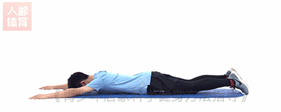 身体呈俯卧姿势,双臂向两侧斜前方伸直,呈“Y”字形, 双手掌心朝下,双腿伸直。后背部发力将双臂和肩部抬离地面。