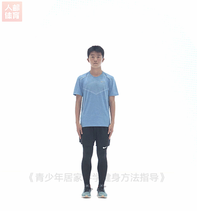 身体呈直立姿站立,双脚分开,距离略窄于肩,双臂自然垂 于身体两侧。