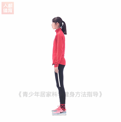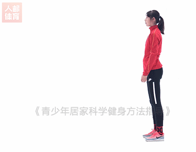 身体呈直立姿站立,双脚距离略窄于肩,双臂自然垂 于身体两侧。