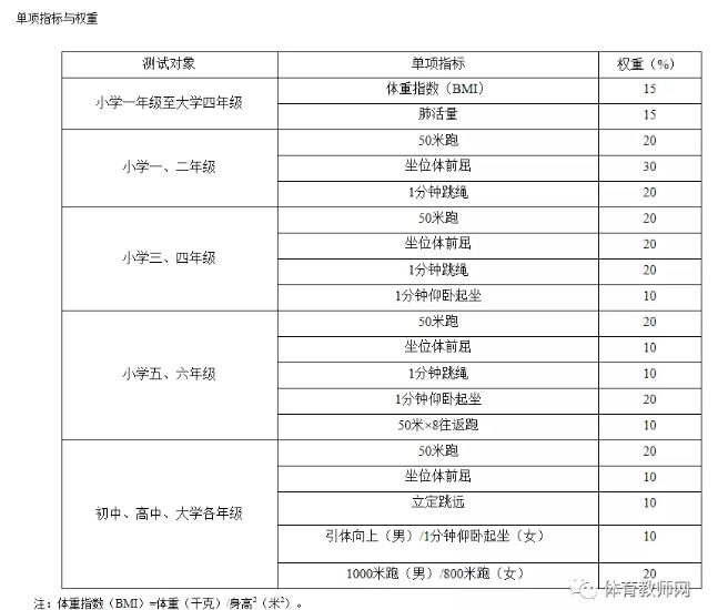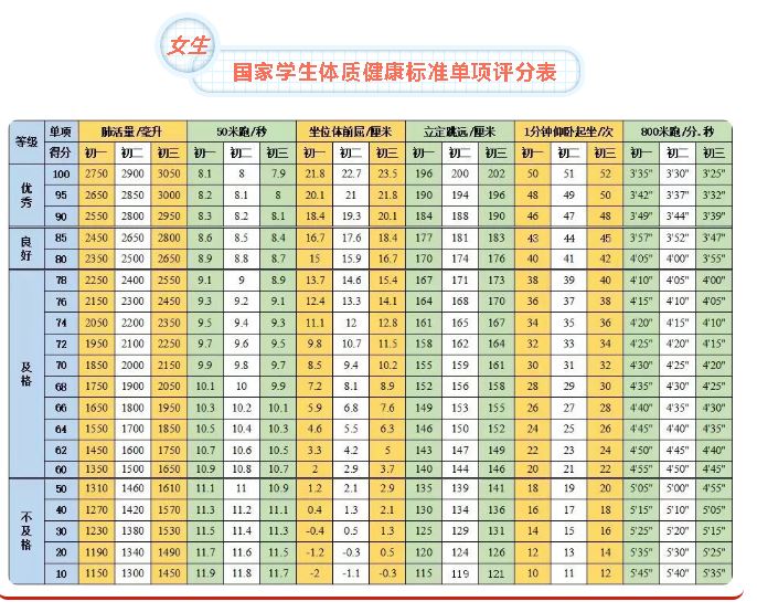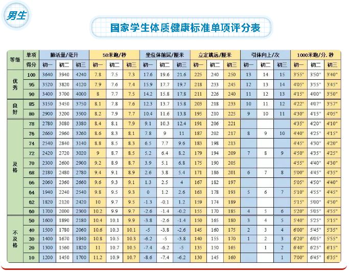 跟体育教师网一起来看看初中生的体质健康测试项目和标准吧!