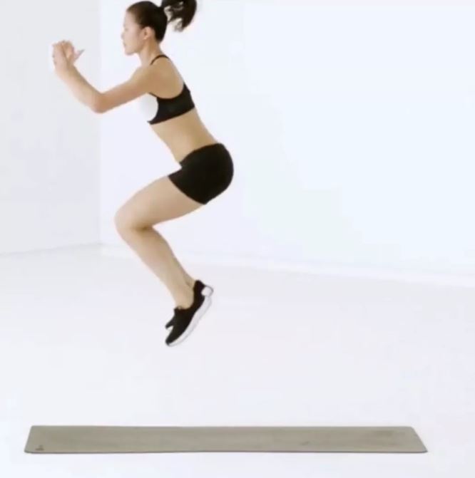 ●从原地直立开始起跳,空中做屈腿抱膝动作或双手在腿前击掌。
