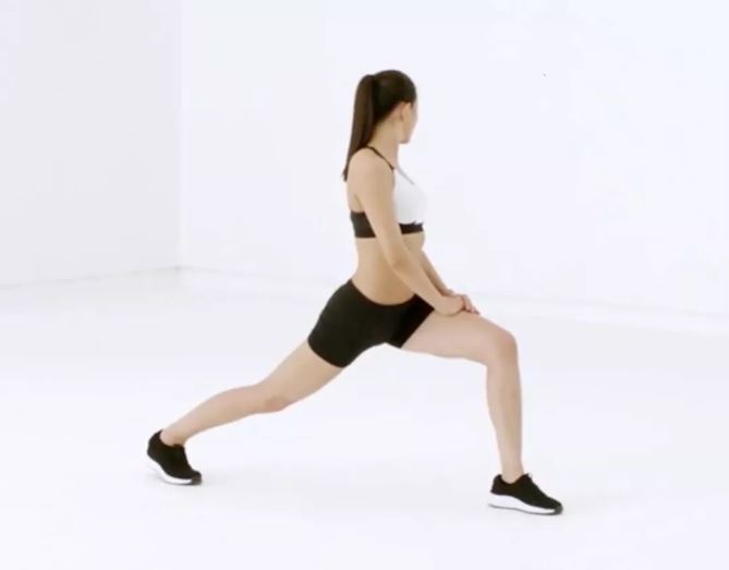 ●大腿后侧有拉伸感,保持1秒,下蹲,继续循环。