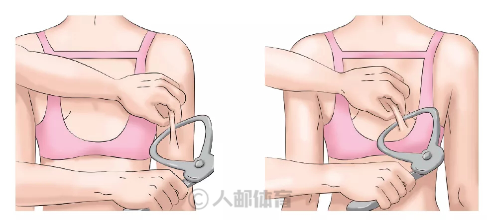 利用皮脂钳测量上臂及肩胛角下的皮褶厚度(每个测量部位建议测量2~3 次,然后计算平均值),然后将这些皮褶测量数据代入公式后,就可以得到一个相对准确的体脂率。