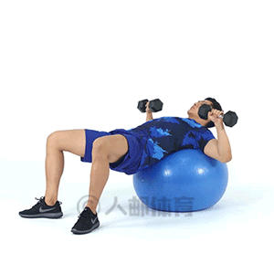 E.哑铃- 瑞士球- 仰卧 -臀桥- 推举