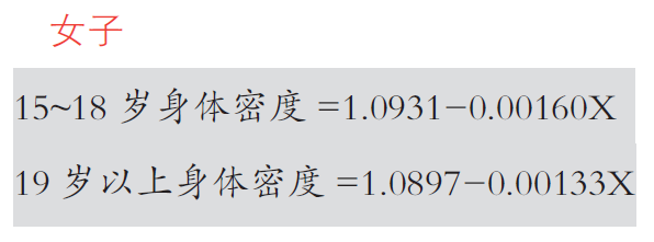 根据皮下脂肪厚度推算身体密度,我们暂且引用以日本青少年为对象的计算公式供大家参考。