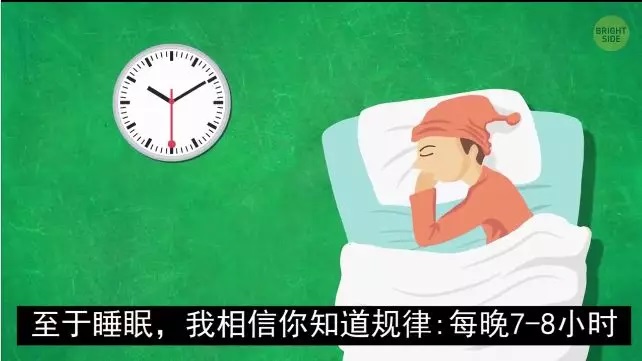 至于睡眠,相信你知道规律:每晚7-8小时。