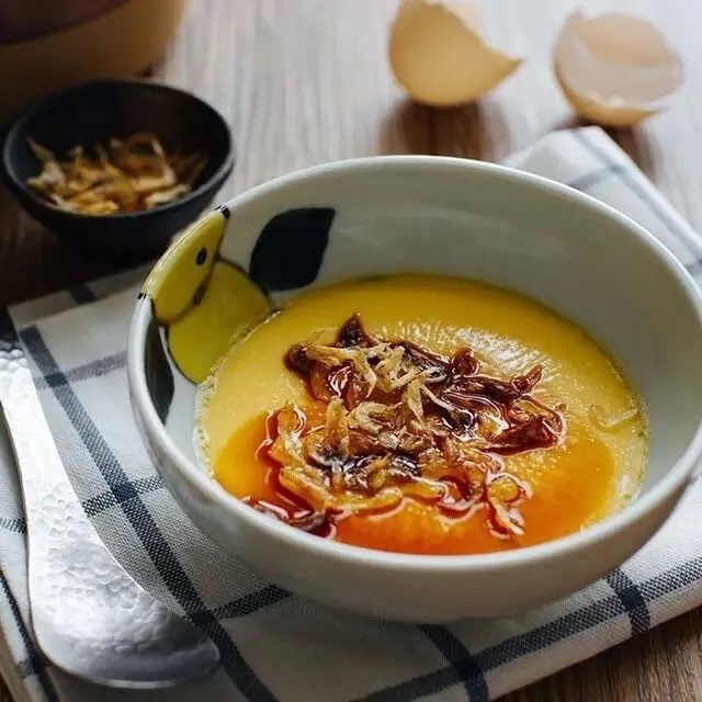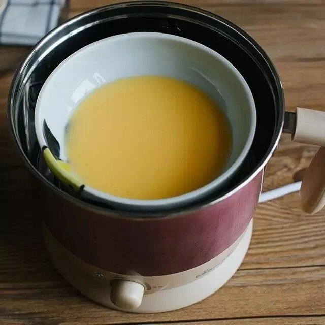 在小煮锅中加入适量的水,放上蒸架(或采用蒸蛋器的蒸碗),加热蒸约 8 分钟。