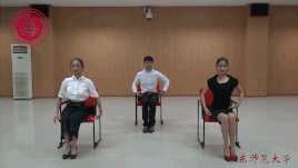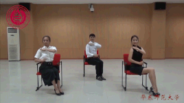 1—4拍:左手从体前向右打开,左手扶椅背,右手搭左膝,上体左转,头部转向左,胸腰、肩背拉伸。