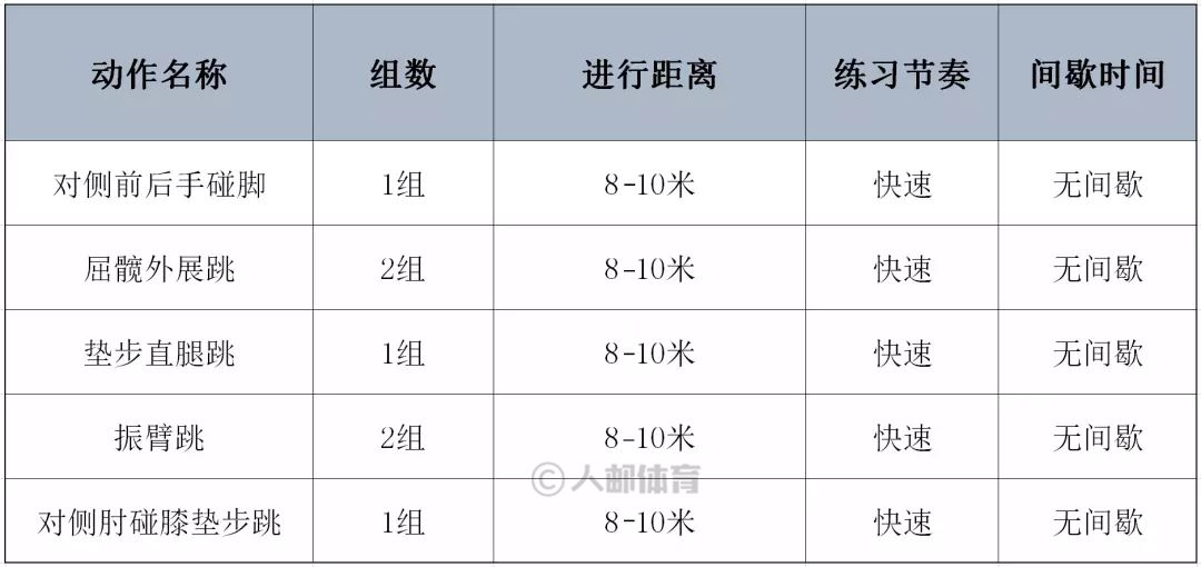 下面这份热身计划就可以帮到你哦。这些热身动作可以激活小朋友肌肉中的本体感受器,提升肌肉温度,降低肌肉黏性,尤其可以加强下肢关节的活动度,提高下肢脚步动作的协调性,以适应运动姿势和动作模式的变化,从而为接下来的训练做好更充分的准备。