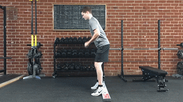 脚跟离地,可以用杠铃片垫高脚后跟,减少脚踝和小腿灵活性的限制,如果你触摸不到自己的脚趾,应该首先进行这个练习,仅仅只是通过俯身尽力触摸脚趾,禁止任何弹震式的触摸。