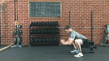 随着举起药球的同时,你会想要屏住呼吸,但一定要蹲起后呼气,然后在重复这个过程。