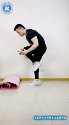 与第四个动作相比,动作幅度更大,进一步增加了练习的难度,更充分地调动全身肌群参与运动中。