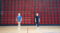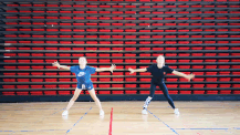 7—8拍:分腿跳,身体前屈,双手侧平举。