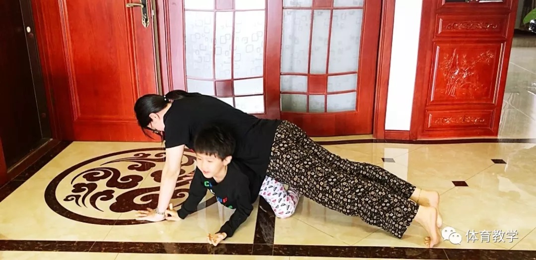 2.游戏开始,站在一侧者从俯撑者身下钻过,再从其身上跨过回到原位。