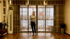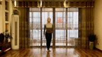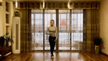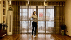 注意事项:三位脚站立,两腿内侧肌肉夹紧,收臀立腰,肩部打开下沉,手臂波浪轻柔有控制完成,同时配合音乐,保持呼吸平缓。